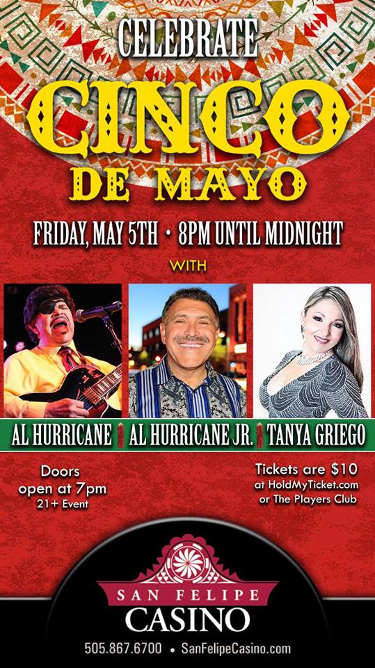 Cinco de Mayo with Al Hurricane at San Felipe Casino Al Hurricane, Al Hurricane Jr & Tanya Griego Share Facebook Twitter