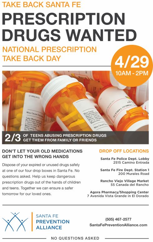 Dispose of your expired or unused drugs safely at one of our four drop boxes in Santa Fe. No questions asked. Help us keep dangerous prescription drugs out of the hands of children and teens. Together we can ensure a safer tomorrow for our loved ones.