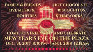 Plan ahead to gather friends and family to celebrate at a FREE public party for all: Live music from Alex Maryol, Sol Fire, and Fun Adixx on the Bandstand; cozy bonfires to warm you on the outside and hot chocolate and biscochitos to warm you on the inside; a memorial banner for sharing your hopes and dreams; a blaze of fireworks overhead; and the grand finale – the raising of New Mexico’s signature symbol, the Zia, to say Adios 2017 and Bienvenidos 2018!