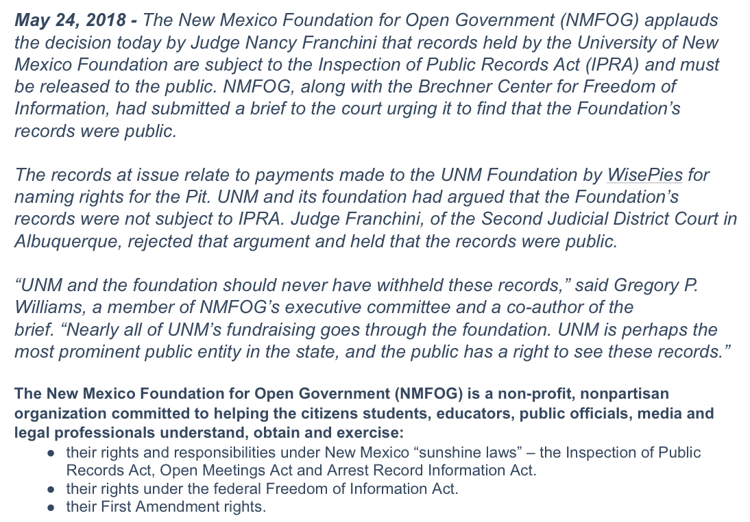 Foundation For Open Government applauds decision By The New Mexico Foundation for Open Government Share Facebook Twitter