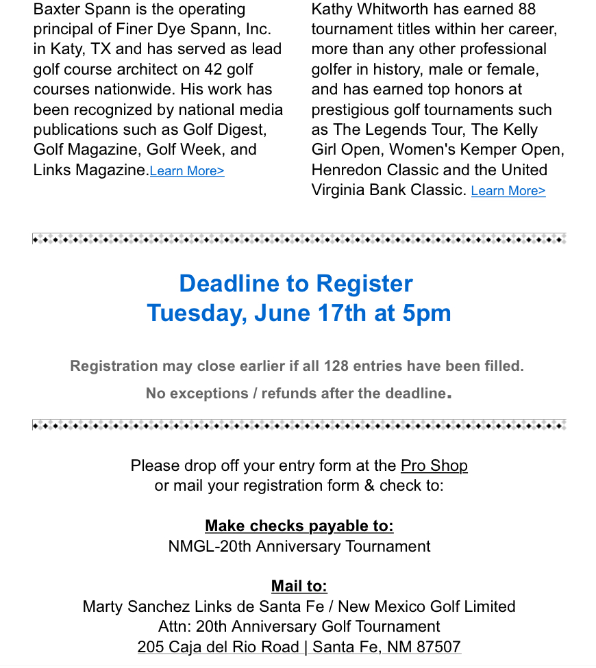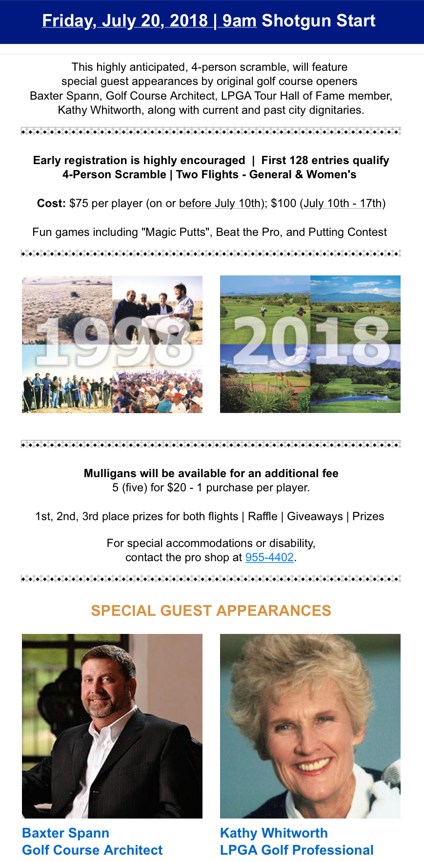 20th Anniversary Golf Tournament | First 128 entries qualify By Marty Sanchez Links Share Facebook Twitter