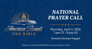 As we approach America’s 250th anniversary and prepare for America Reads the Bible, we are inviting believers across the country to come together in prayer for our nation. This Thursday, April 2 at 8:00 PM Eastern, our ministry, Christians Engaged, will be hosting a National Prayer Call for America Reads the Bible. …